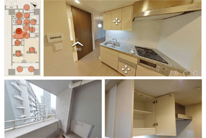 360°カメラによる動画に近い映像をWebで配信しています。室内がわかりやすく、広く見えるので内見数が増えて成約に結び付きやすくなります。