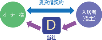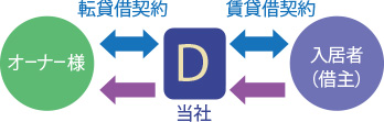 オーナー様と入居者の賃貸借契約を当社が代理として締結